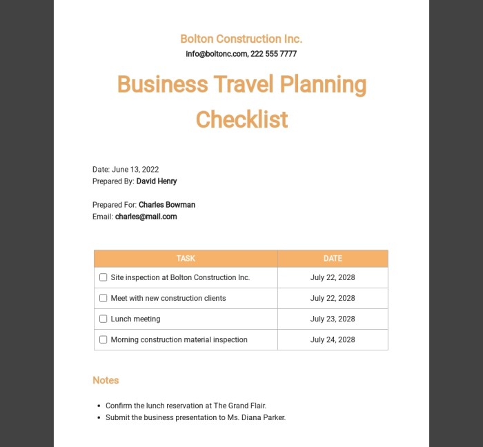 When preparing for a business trip, having a well-structured checklist can make a significant difference in ensuring a smooth and successful journey. Here are some essential items to include in your business travel planning checklist: